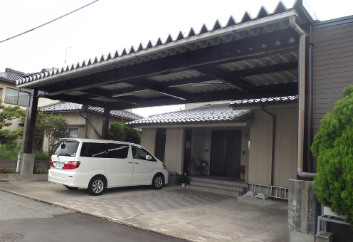 耐候性塗料(シリコン)による鉄骨車庫の塗装工事を行いました。 NEW