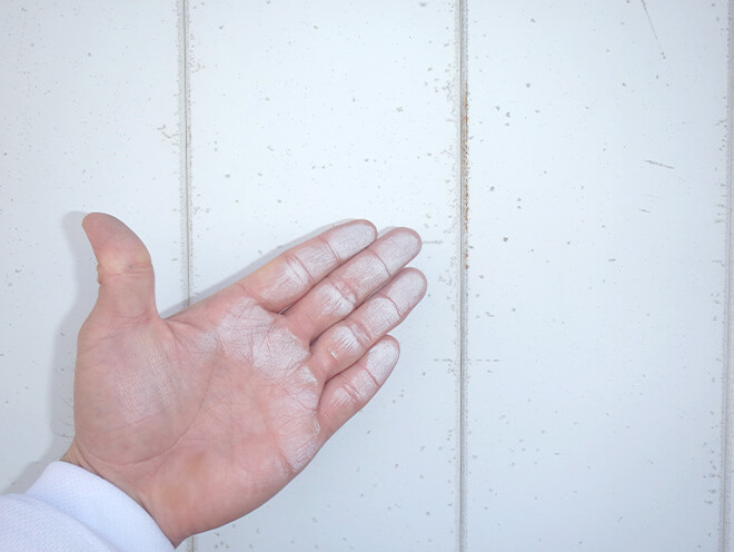 外壁を手でこすると、チョークのような白い粉が付く症状