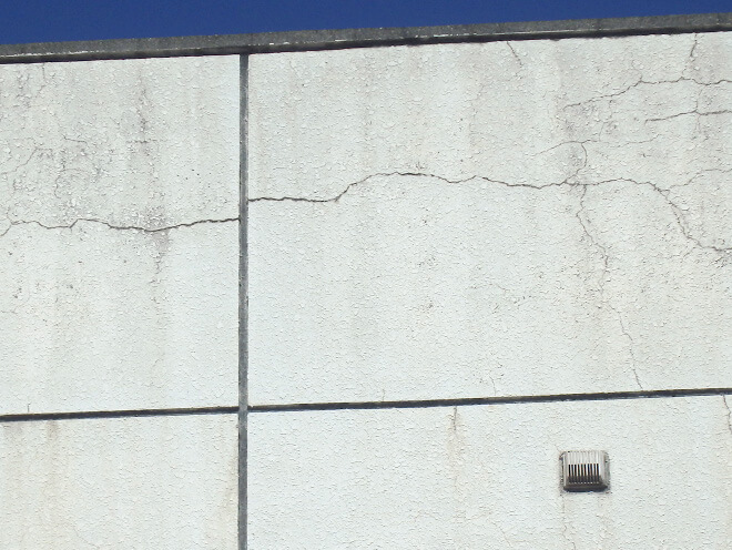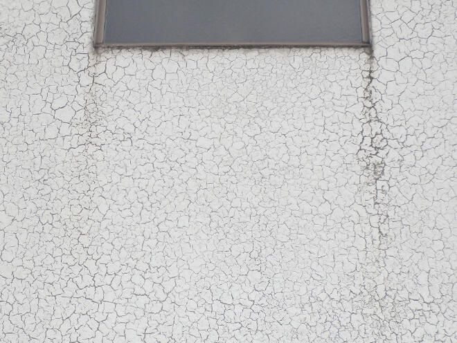 大きなひび割れは、 塗装膜の下地素材(躯体)が割れている可能性があり、雨水が侵入するおそれがあります。