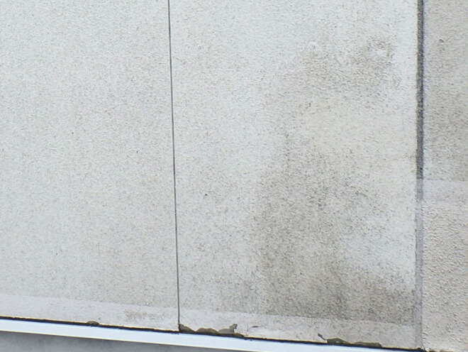 外壁が劣化すると、表層面が保水性を持ち、雨の汚染物質や藻、カビが付着しやすなり、汚れを引きよせるからです。緑色は藻が繁殖している現象で、 黒色は黒カビで、藻の死骸を栄養分として繁殖する、連鎖現象です。それ以外の汚れの主なものは、大気汚染物質などが考えられます。
