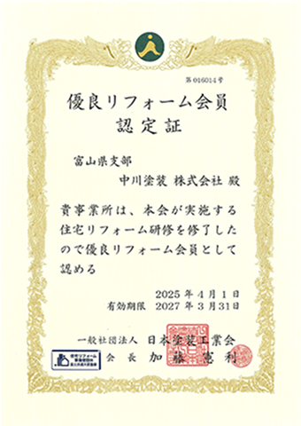 当社は、国土交通省が定める「住宅リフォーム事業者団体登録制度」に加盟しています。法令順守・施工品質・適正な契約体制など、一定の基準を満たした業者のみがこの制度に加盟でき、国の基準に則った安心の塗装工事をご提供します。